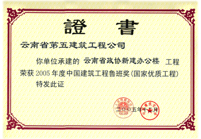 昆明市第一人民醫(yī)院外科住院大樓—2005年度“AAA級(jí)安全文明標(biāo)準(zhǔn)化誠(chéng)信工地”